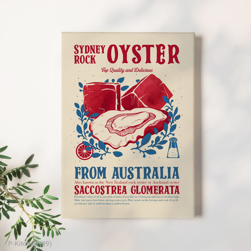 Modern Holiday Wall Art Seafood Poster Illustration Kitchen Wall Decor Canvas Print with Wood Frame