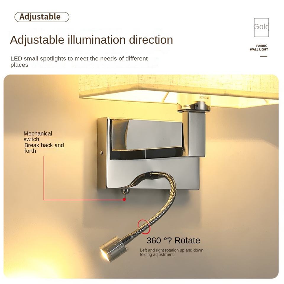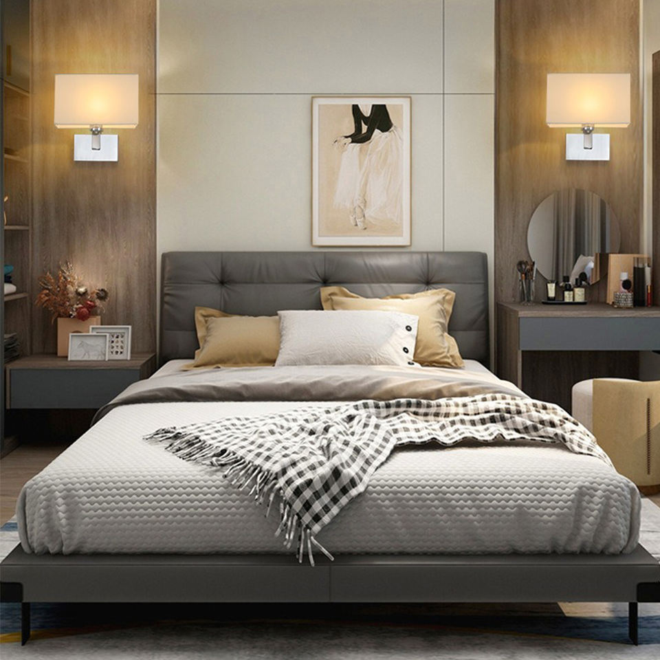 Modern Home Building Wall Lamp with LED Light Source Iron Body Fabric Lampshade in Black White Beige