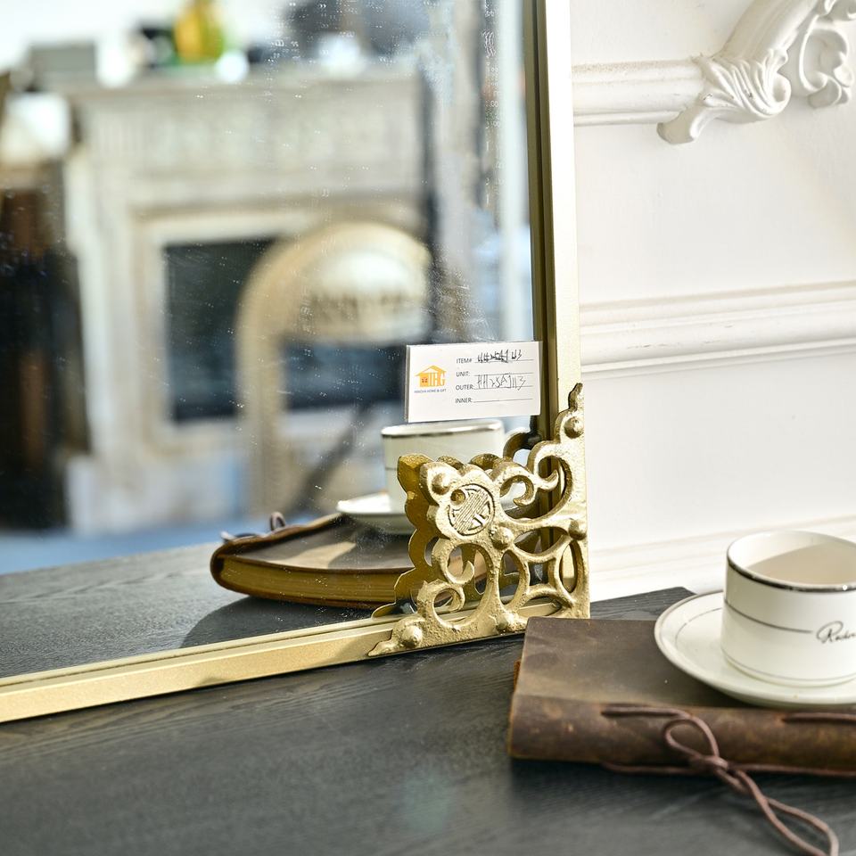 Rustic Eco-friendly Home Living Room Decor Iron Accent Flower Design Gold Metal Wall Mounted Mirror