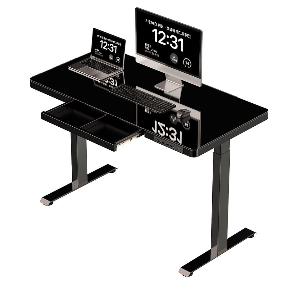 Modern Home Office Furniture-Ergonomic Electric Smart Single Motor Sit/Stand Glass Desk Adjustable Base Convertible Office Desk