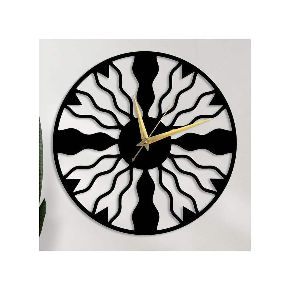Modern Home & Office Sunburst Abstract Wall Clock Black Metal Design with Gold Hands Decorative Clock for Home & Office