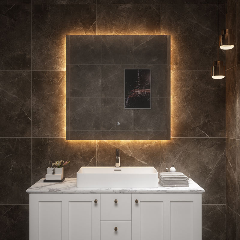 Modern Hotel Living Bath Rectangle LED Light Smart Frameless Vanity Mirror with LED Screen IP44 Rated Backlit 3-Year Warranty