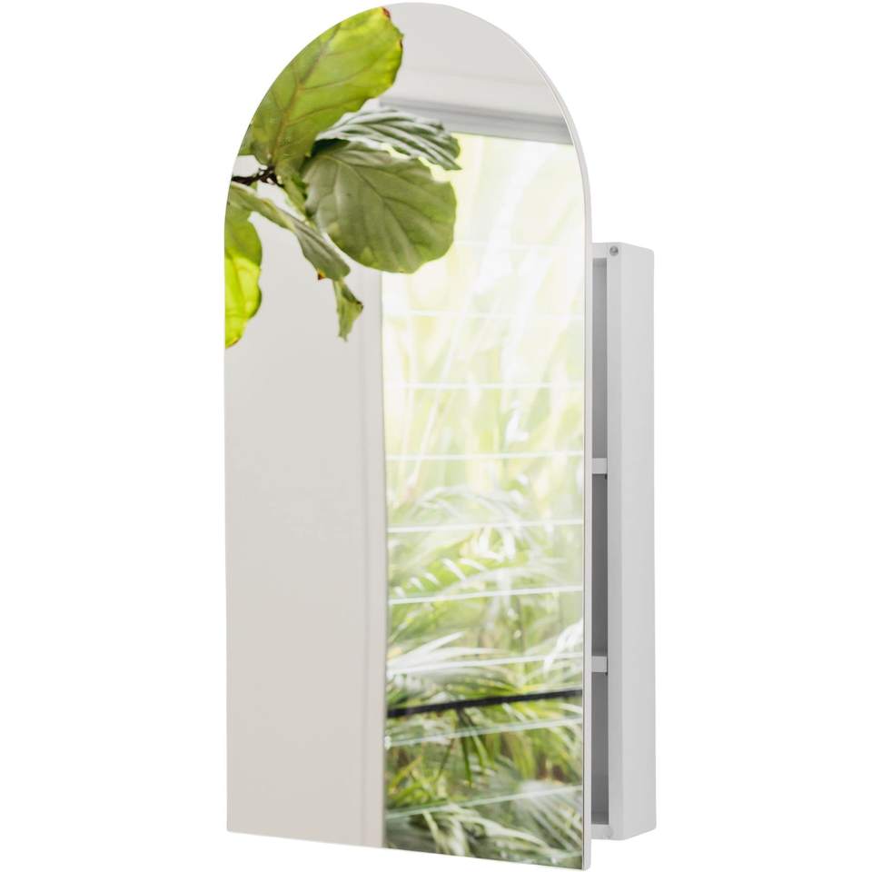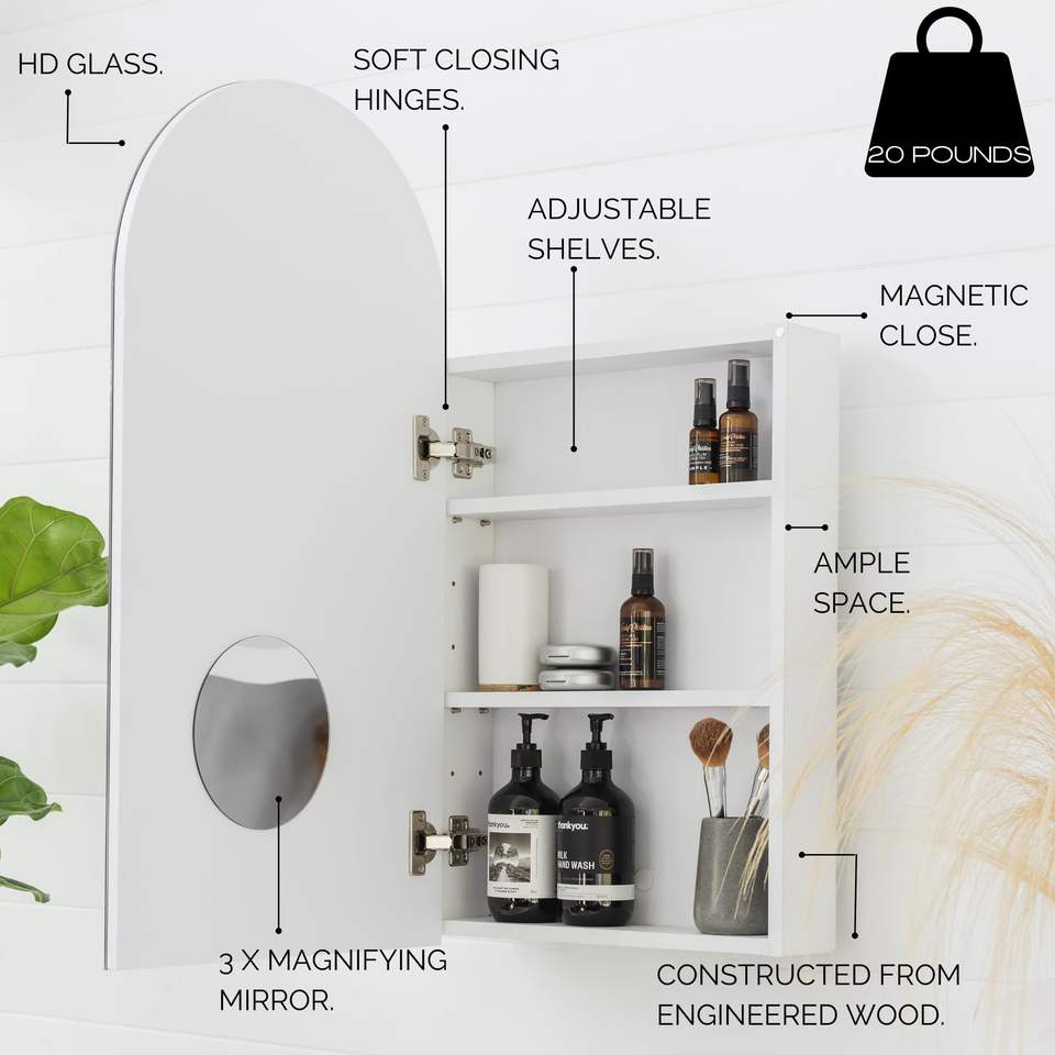 Modern Illuminated Arched Rectangle Mirror Medicine Cabinet for Hotel Bathroom Wall Mount or Recessed Application Plug Powered