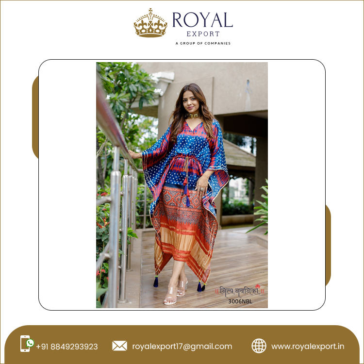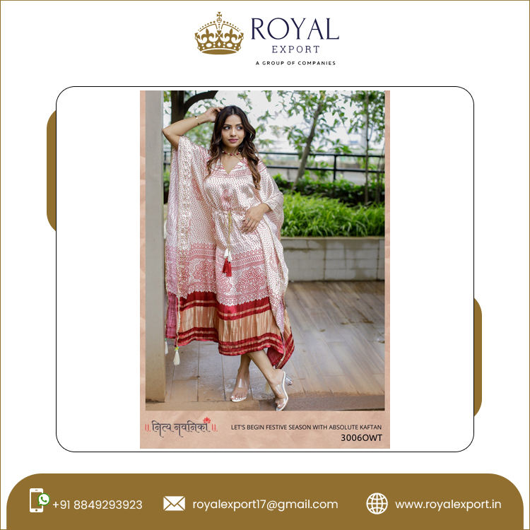 Modern Indian Clothing Pure Gaji Silk Bandhej Digital Print With Gotta Patti Lace Border with Tassels Stitched Kaftan Collection
