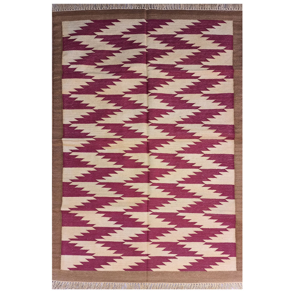 Handmade Modern Indian Cotton Geometric Rug Custom Flat Weave Design with Natural Vegetable Dye Area Rugs & Sets