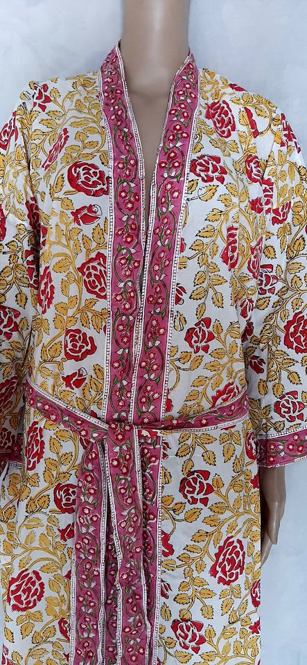 Modern Indian Cotton Kaftan Maxi Dress for Women Vintage Swim Robe Hand Block Print Long Beach Cover Night Waistline Natural