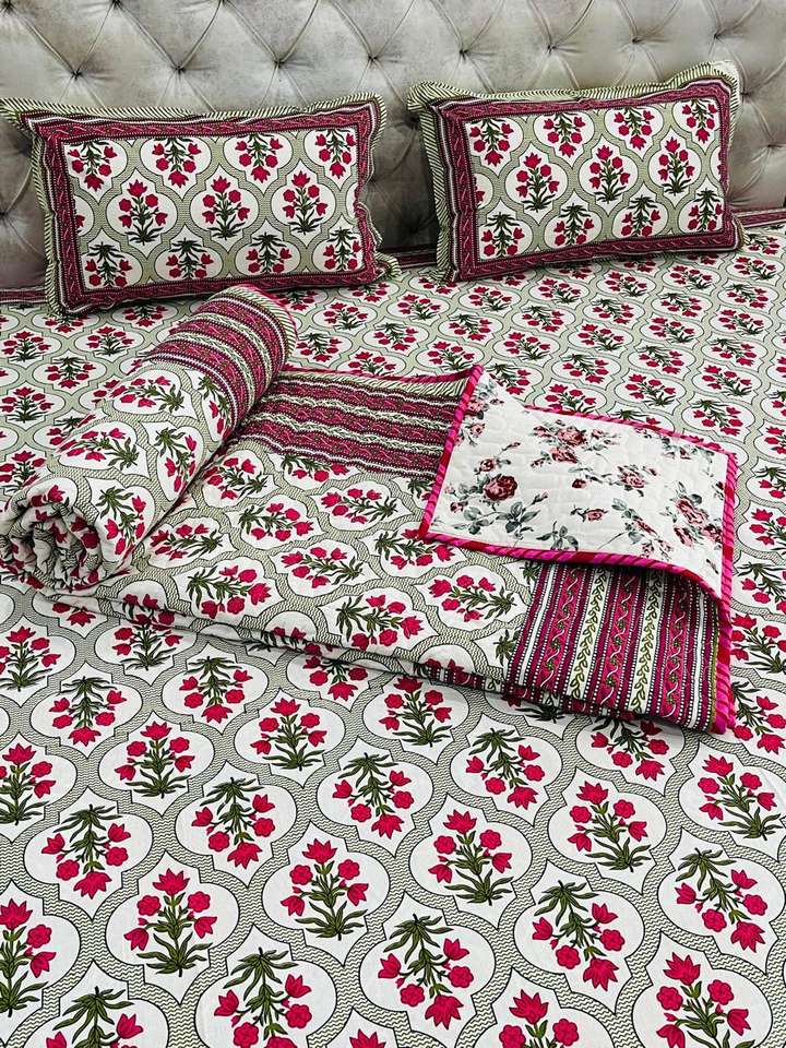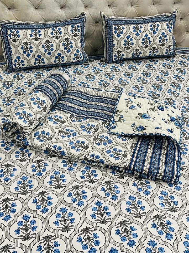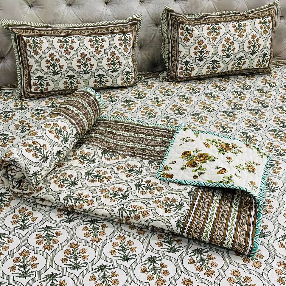 Modern Indian Handmade Cotton Bedding Set Hand Block Printed Quilt Duvet Pillow Cover Bedspread and Blanket Throw
