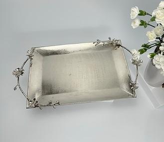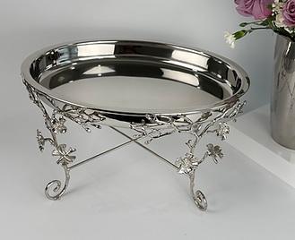 Modern Indian Silver Dishes Brass Boarder With Floral Pattern Stainless Steel Trays Tier Stand Fruit Salad And Nut Bowls