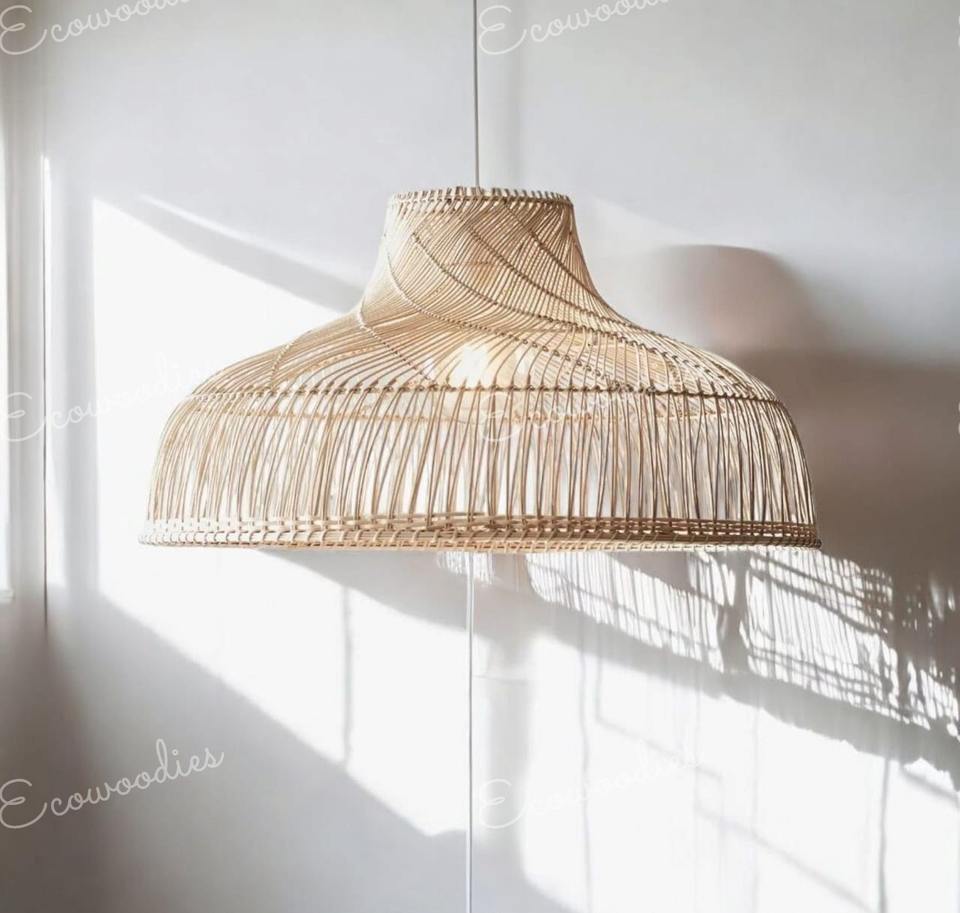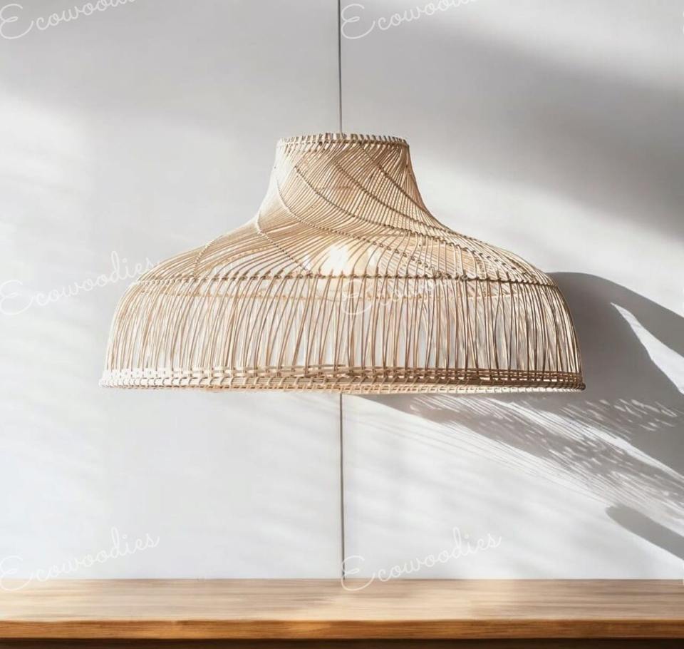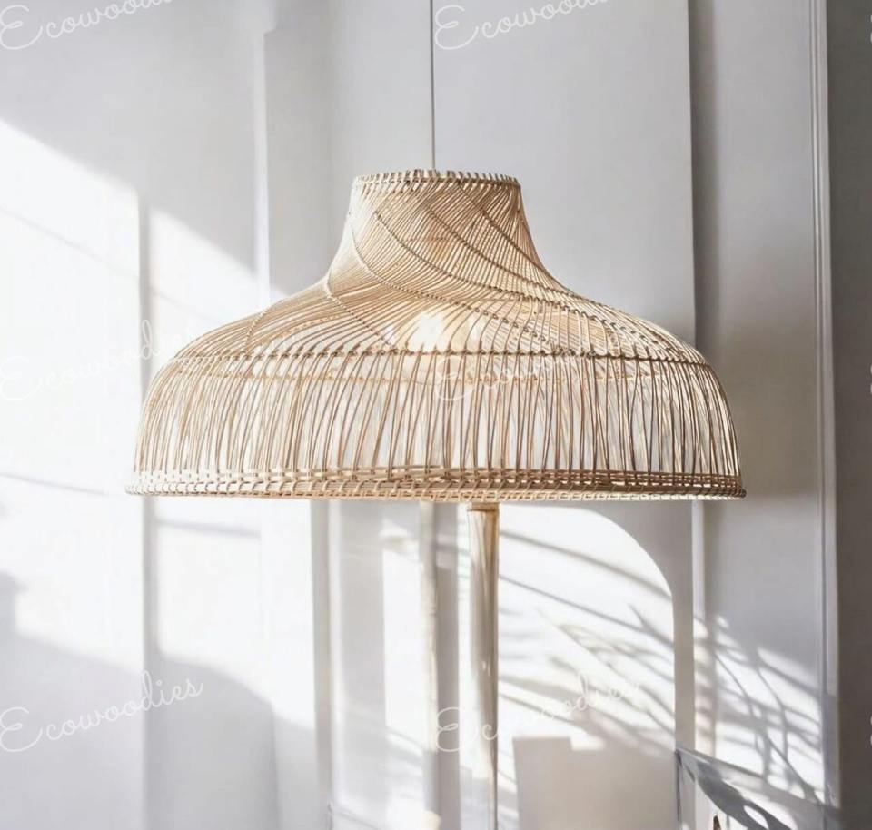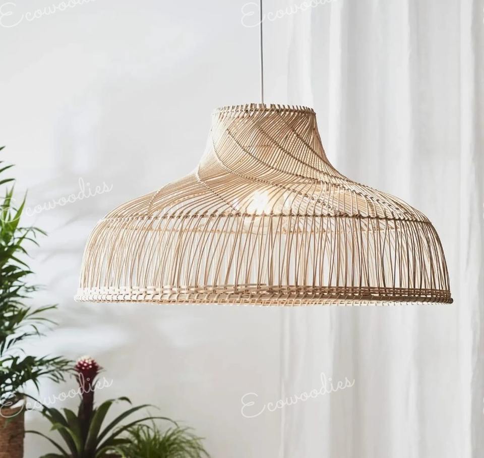 Modern Indoor Hanging Handmade Bamboo Wicker Ceiling Lamp Natural Pendant Light Lampshade Cover Restaurant Designer Wicker Shade