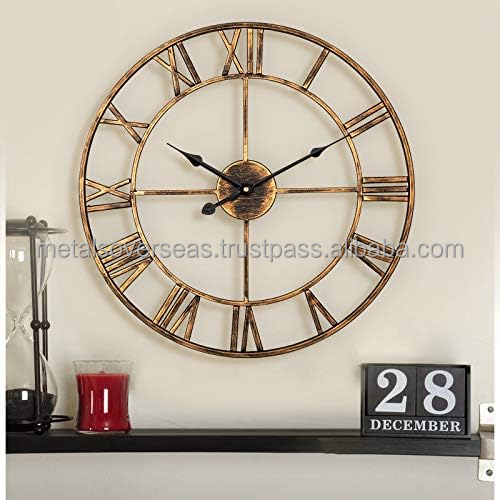 Modern Indoor Iron Wall Clock Oversized Antiqued Nordic Roman Numeral Accurate Silent Digital Printing Gold-Plated Metal
