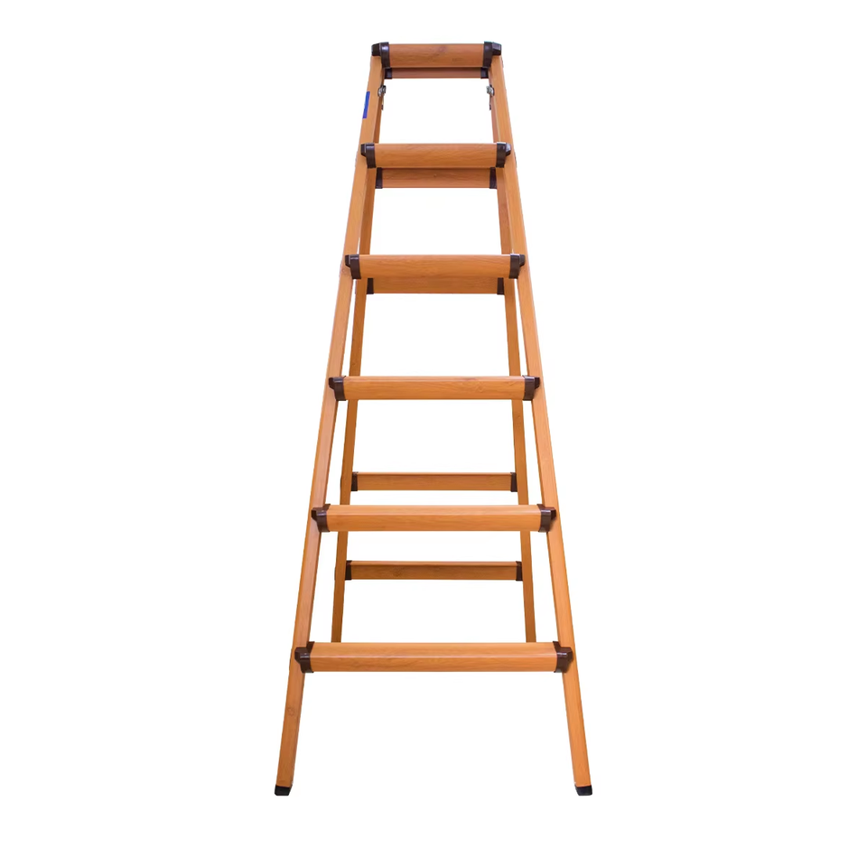 Modern Industrial 2x6 Telescopic Wooden Aluminum Ladder Lightweight Folding Design Easy to Carry & Store