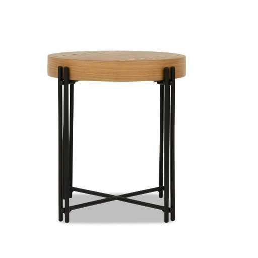 Modern Industrial Design Solid Wooden Round Top Side Table Coffee Table End Table for Living Room Home Furniture with Iron Leg
