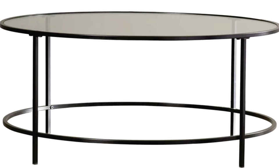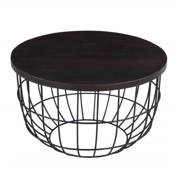Modern Industrial Round Coffee Table with Storage Basket Metal Wire Base Dark Wood Top Living Room Furniture Center Table