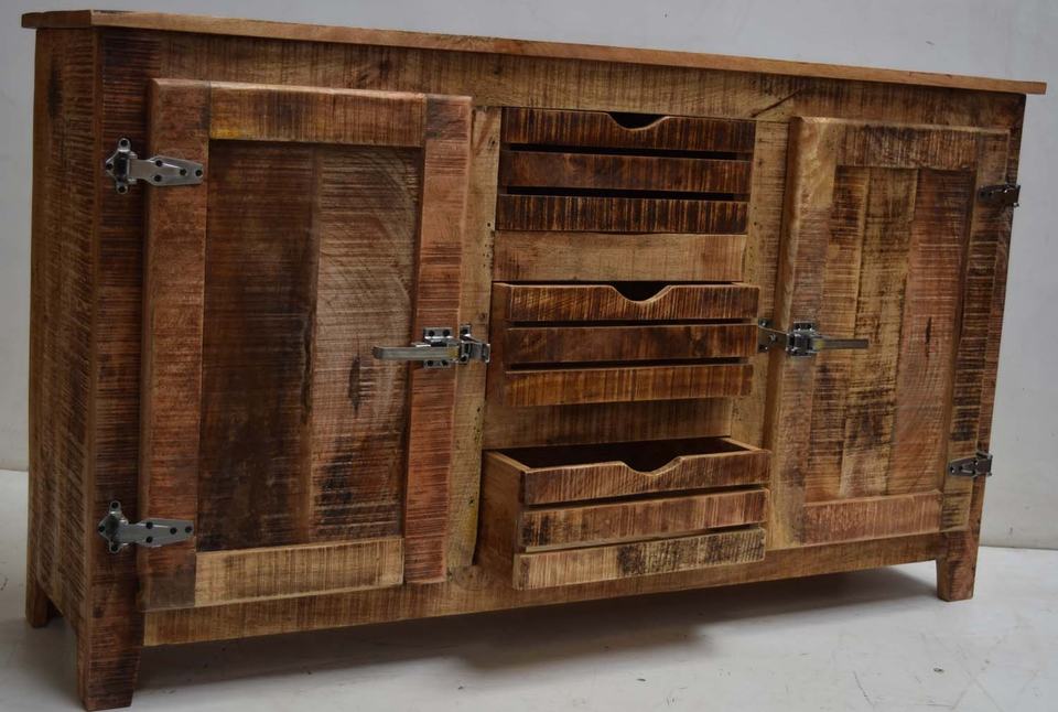 Modern Industrial-Style Solid Wood Sideboard with Rustic Mango Iron Drawers Dining Furniture for Home Living Bedroom Dining Room