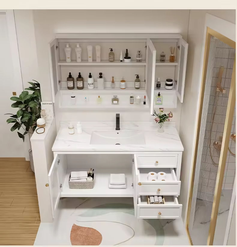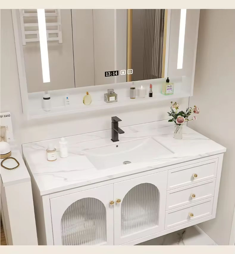 Modern Intelligent Wall-Mounted Bathroom Vanity Cabinet LED Touch Illuminate Ceramic Basin for Hospitals Apartments Schools