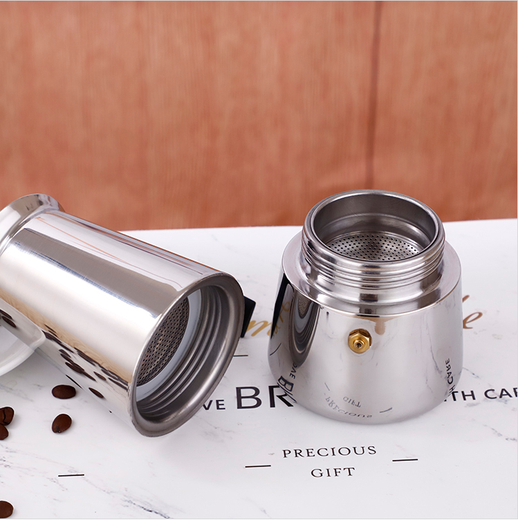 Modern Italian 6-Cup Stainless Steel Moka Pot Stovetop Espresso Coffee Maker Vacuum Metal Lid Thermal Insulation Office Use