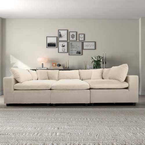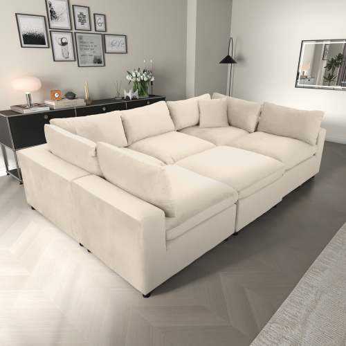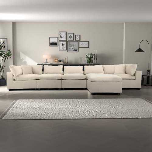 Modern Ivory Velvet Modular Convertible Sectional Sofa for Living Room and Villa Oversized 6 Seat Hotel