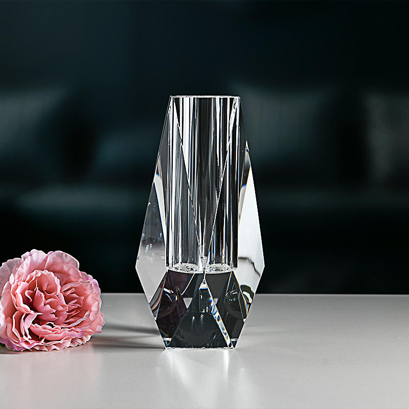 Modern K9 Crystal Triangle Vase Luxury Prisms Exquisite Handcrafted Glass Ornament for Home Bedroom Living Room Table Decoration