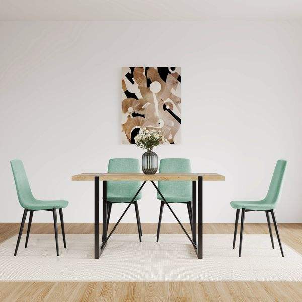 Modern Kitchen Dining Chair Set 4 Upholstered Accent Chairs Linen Cushion Seat Sturdy Black Metal Legs Light Green-for Dining