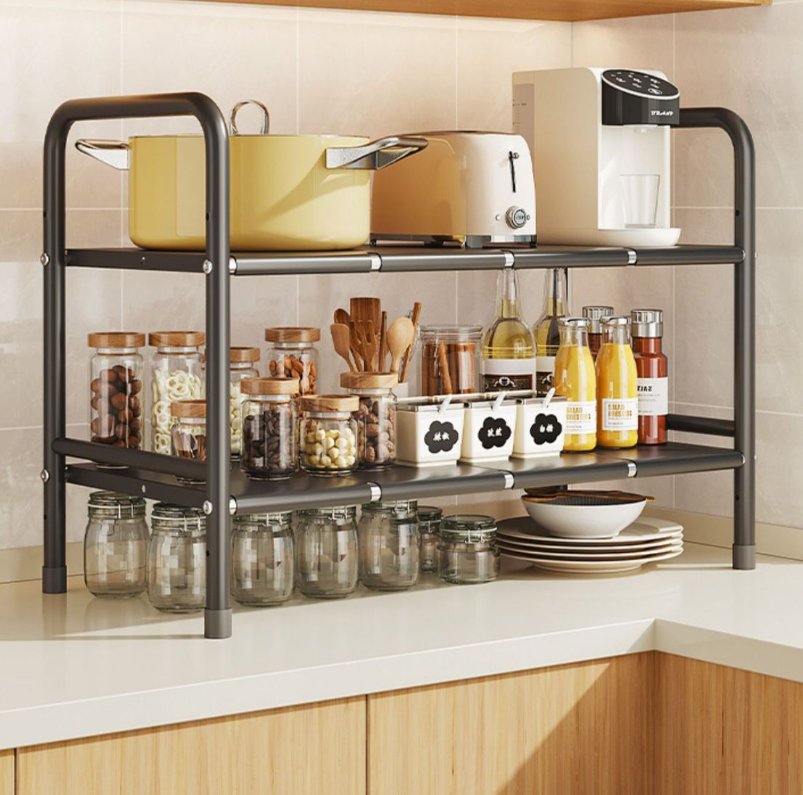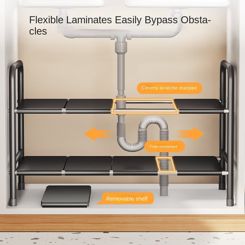 Modern Kitchen Retractable Drain Trough Storage Rack with Layered Pot Rack Multifunctional Organizing Rack