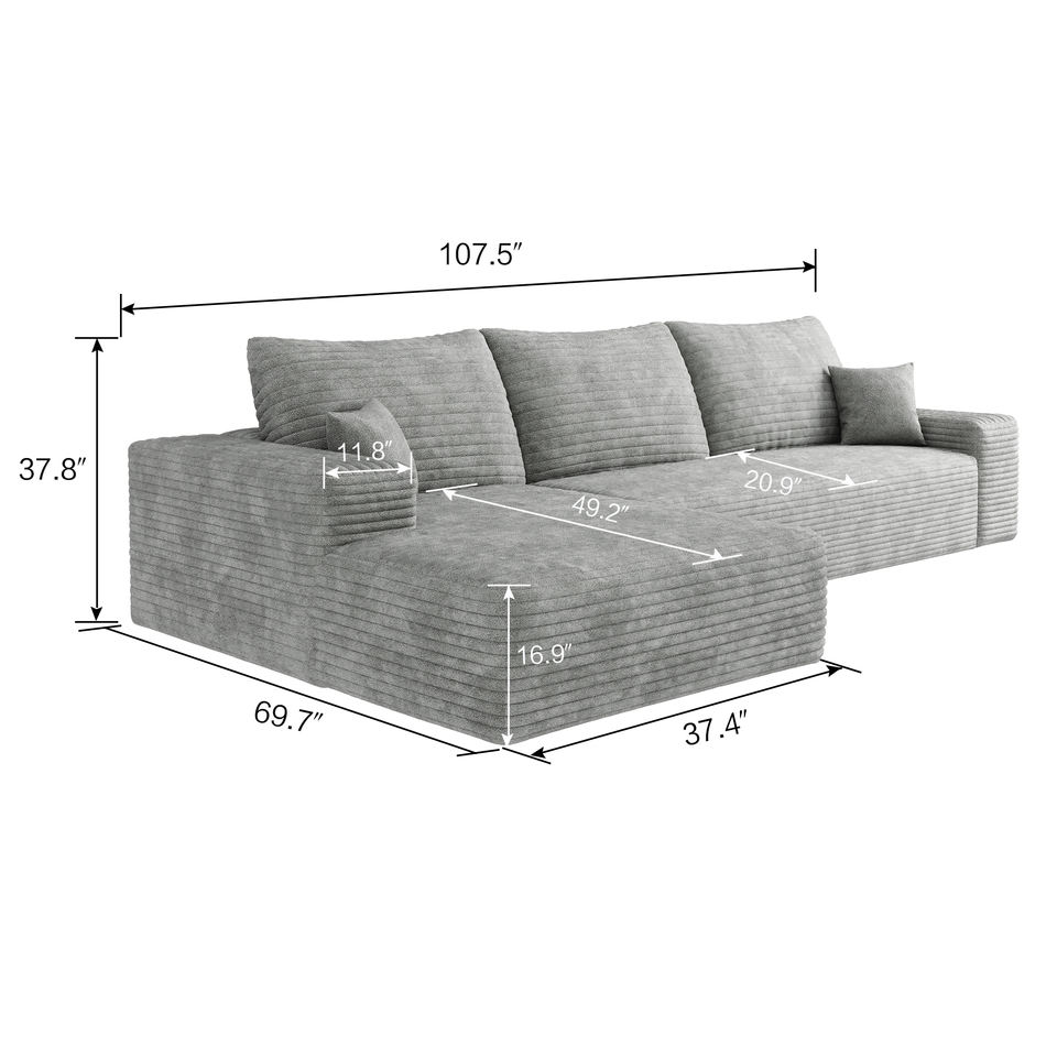 Modern L-Shape Corner Sofa Modular Sofa Bed Set Corduroy Fabric Washable No Assembly Required Eco-Friendly Apartment Hotel