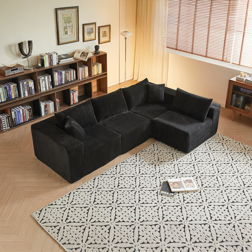 Modern L-Shaped Modular Sectional Sofa Set 3 Seats Villa Living Room Design Durable Fabric Upholstered Cushion Back Modasi Black