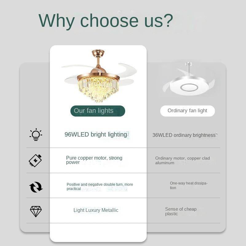 Type:Crystal LED Fan Lamp Lighting Luxury LED Fan lights