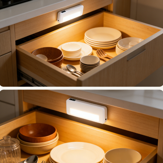 Modern LED Drawer Lights Motion Sensor 4-Piece Cabinet Lighting Closets Indoor Use Vibration 5V Rechargeable Battery Magnetic