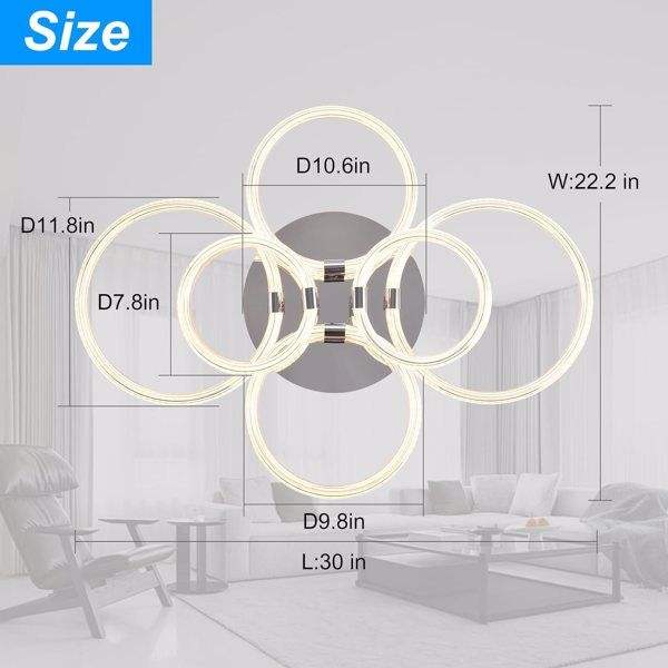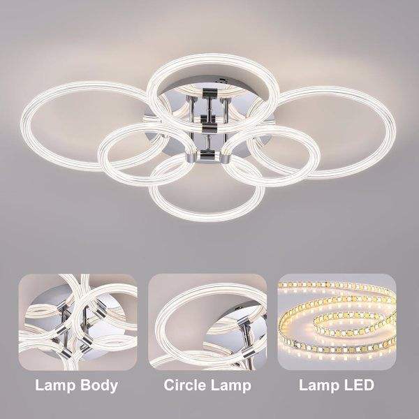Modern LED Flush Mount Ceiling Light 6-Ring Acrylic Fixture with Dimmable Remote Control for Bedroom Living Room & Kitchen