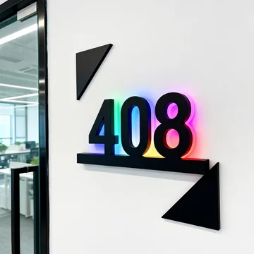 Modern LED Illuminated Door Plate 408 for Office Sleek Black Acrylic Number RGB Color Changing Backlight Modern Office Decor