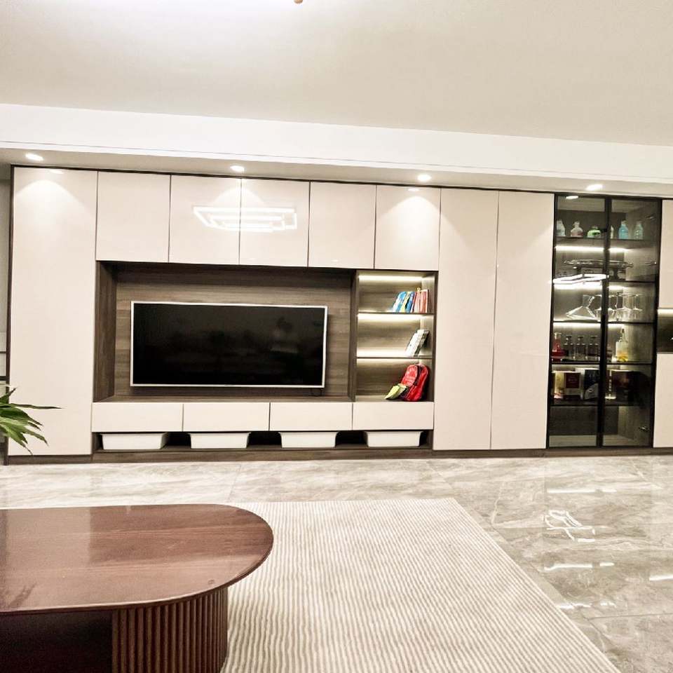 Modern LED Lacquer OSB Display Cabinet Foldable Wooden TV Stand Wall Unit for Living Room and Bedroom Home Furniture Design