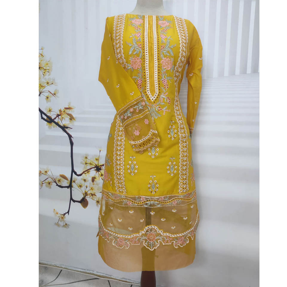 Modern Ladies Ready To Wear Suit With Embroidery Work On Shirt Trousers And Matching Dupatta For Casual Use