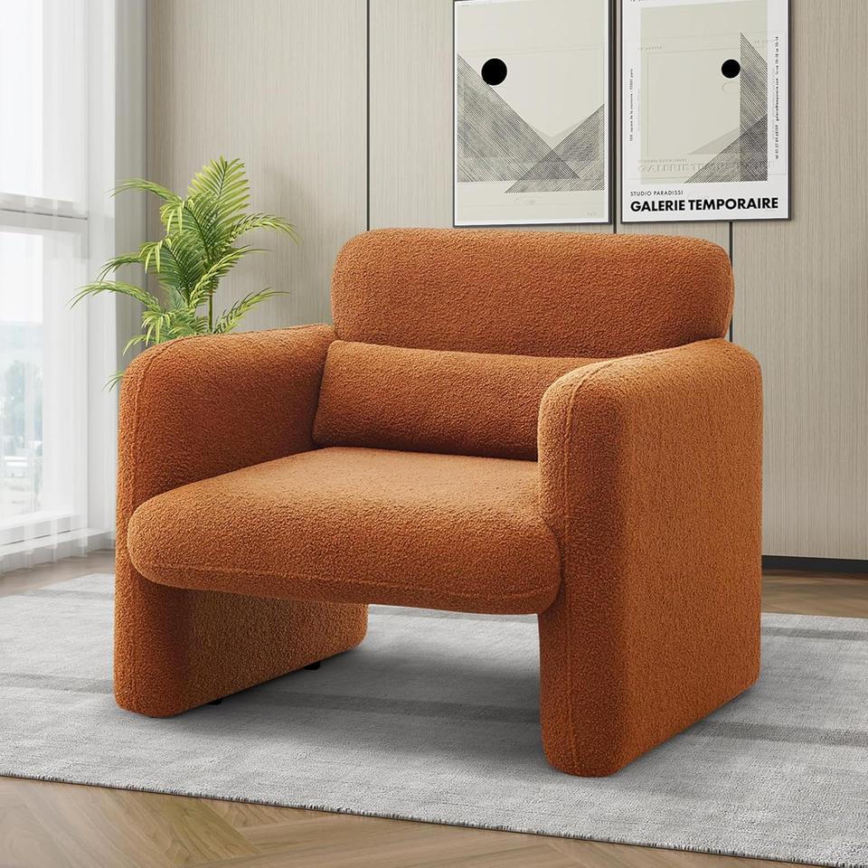 Modern Lamb Fabric Armed Chair Comfy Upholstered Accent Chair Leisure Single Sofa Chair for Bedroom and Living Room, Pink Color