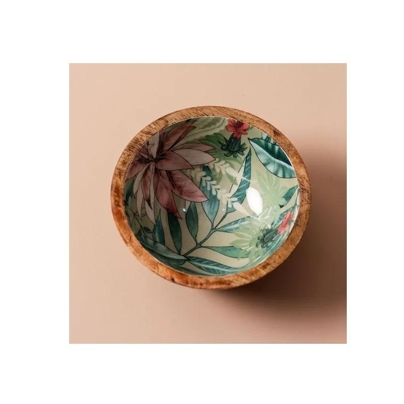 Handmade Modern Large Acacia Salad Fruit Mixing Bowl Tulips Enamel Design Mango Wood Hot Selling Print Finish for Parties
