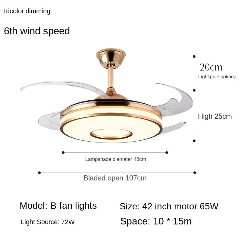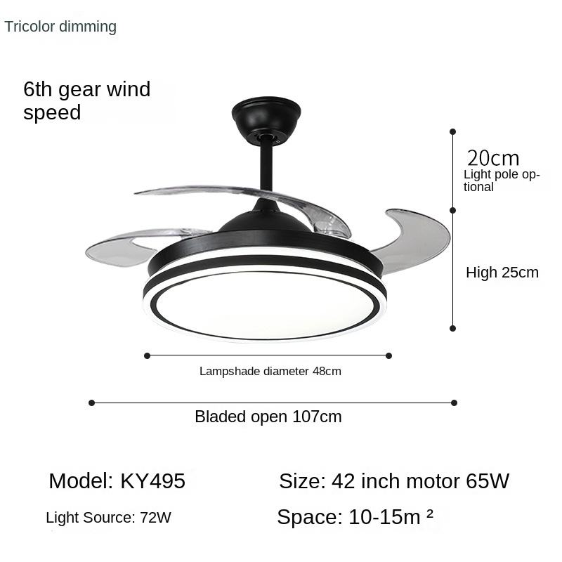 Modern Large LED Glass Ceiling Fan 5 Blades DC Motor Invisible Wind Frequency Conversion Remote Control 10-Year Warranty Living