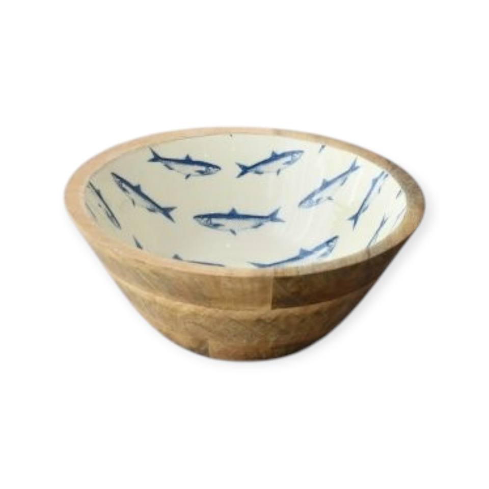 Modern Large Wooden Bowl with Tropical Leaf Enamel Design for Home and Kitchen Use Table Decor