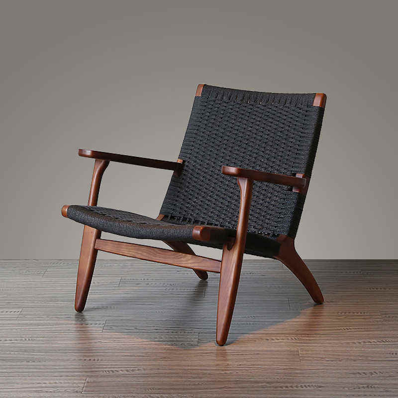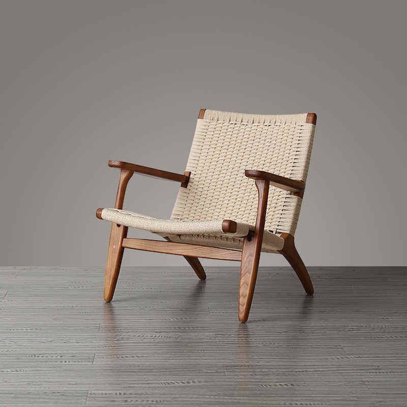 Modern Leisure Indoor Home Furniture Ins Oak Rope Wicker Modern Living Room Lounge Chair