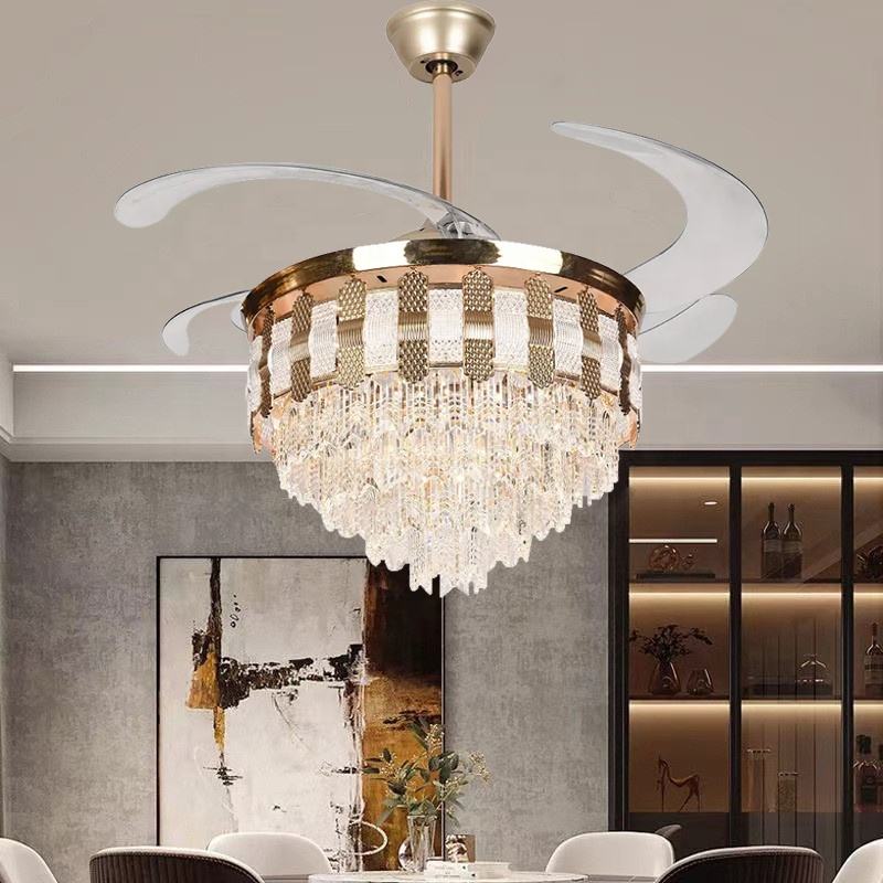 Modern Light Luxury LED Ceiling Fan Light Dimmable Smart Home Remote Control with 6-Speed Wind Speed 42 Inches 5-Year Warranty