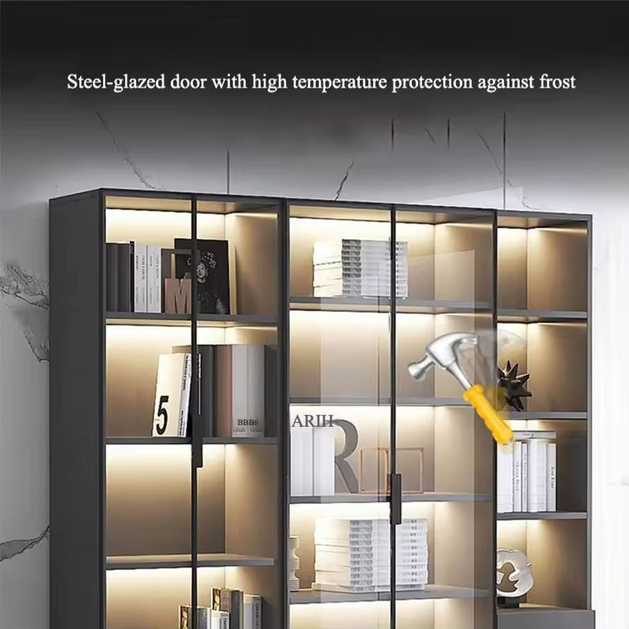 Modern Light Luxury PVC-Door Wall-to-Ceiling Bookshelf with Full-Wall Design Multifunction for Living Room Storage and Display