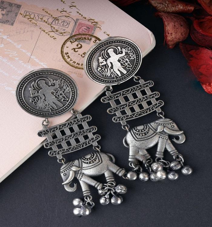 Elegant Oxidised Silver Elephant Drop Earrings For Stunning Women