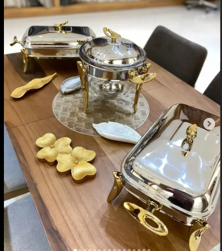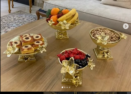 Modern Look Silver And Gold Tier Stands Cake Stands Cake Domes Cooke Stands Bowls Trays and Dishes Boarder With Floral Pattern