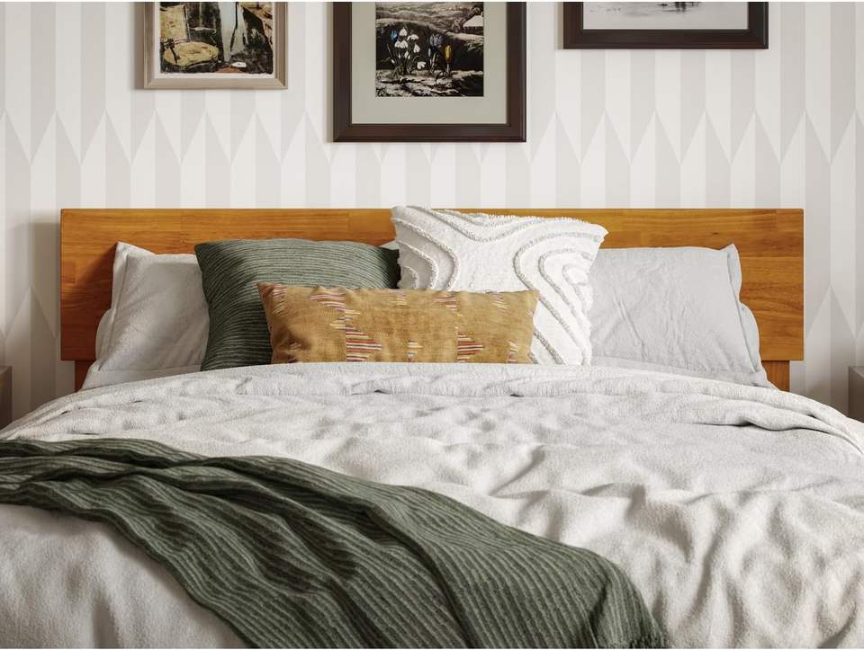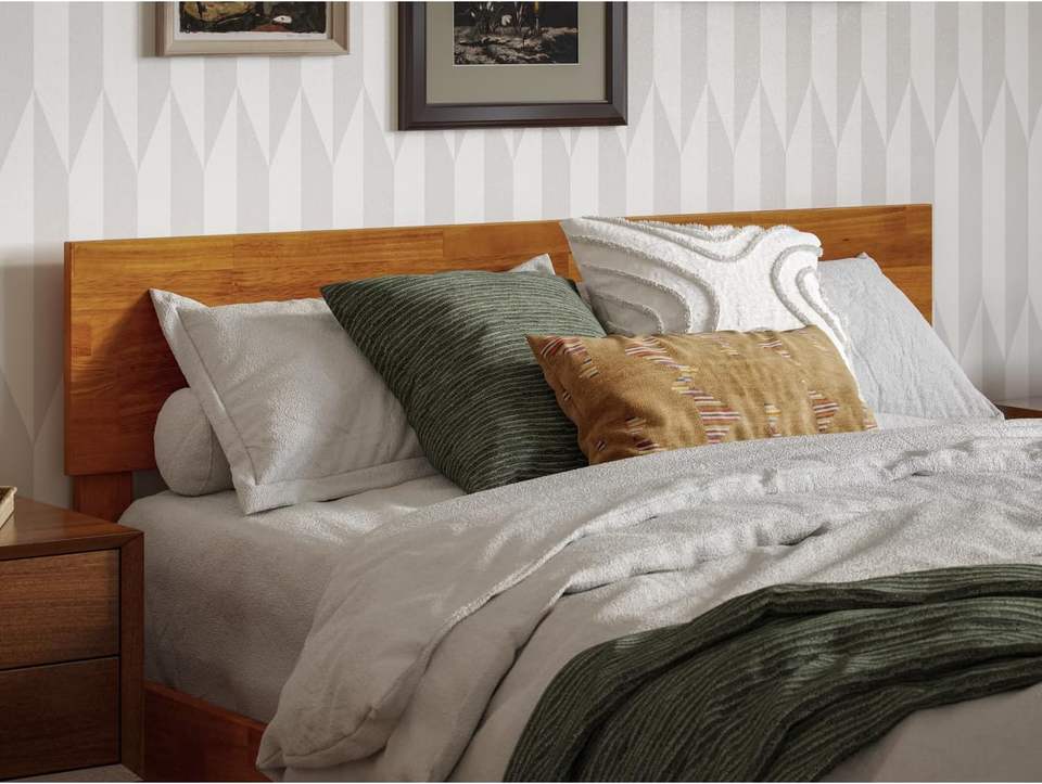 Modern Low Profile Platform Bed in Light Toffee Solid Wood with Traditional Design Style