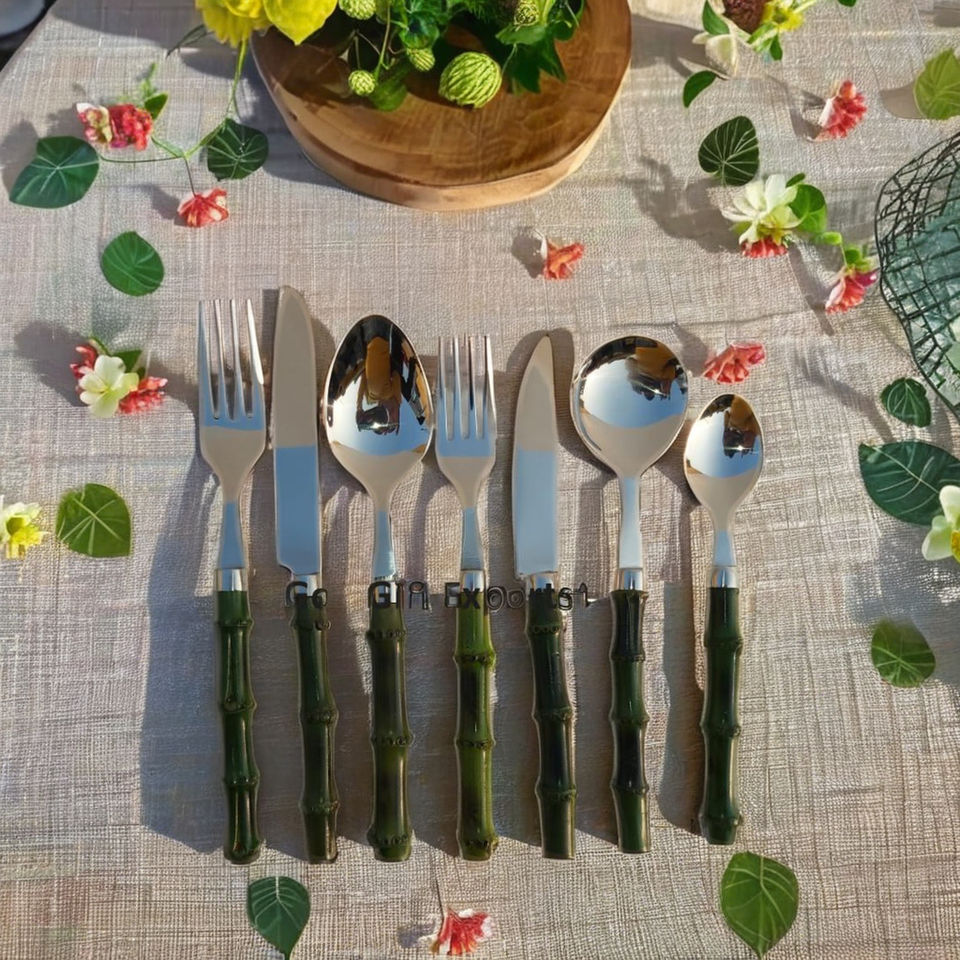 Modern Luxury 18/10 Stainless Steel Flatware Set Stainless Steel Handles Dishwasher Compatible Bamboo Shape for Weddings Parties