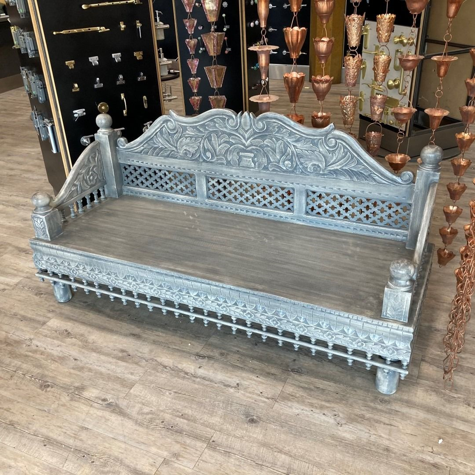 Modern Luxury 2-Seater Sectional Sofa Solid Teak Wood Carved Hot Sale Fabric Cushions for Home School Luxury Living Room