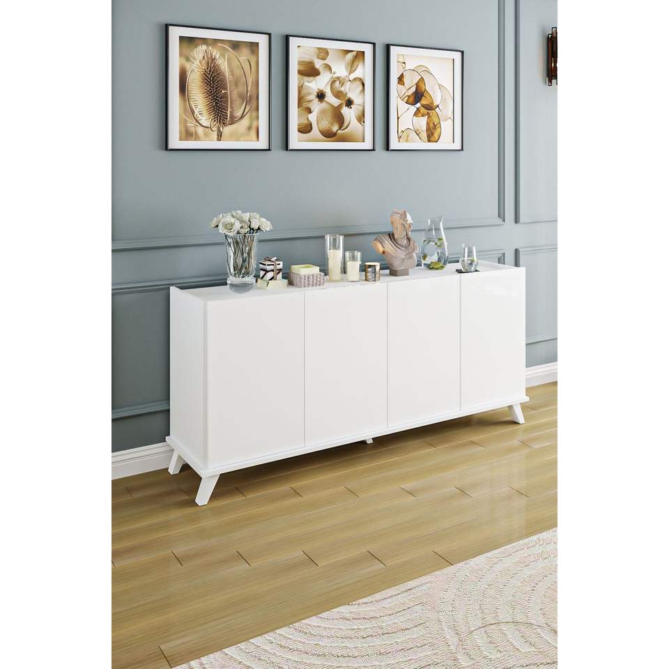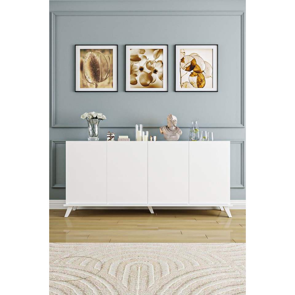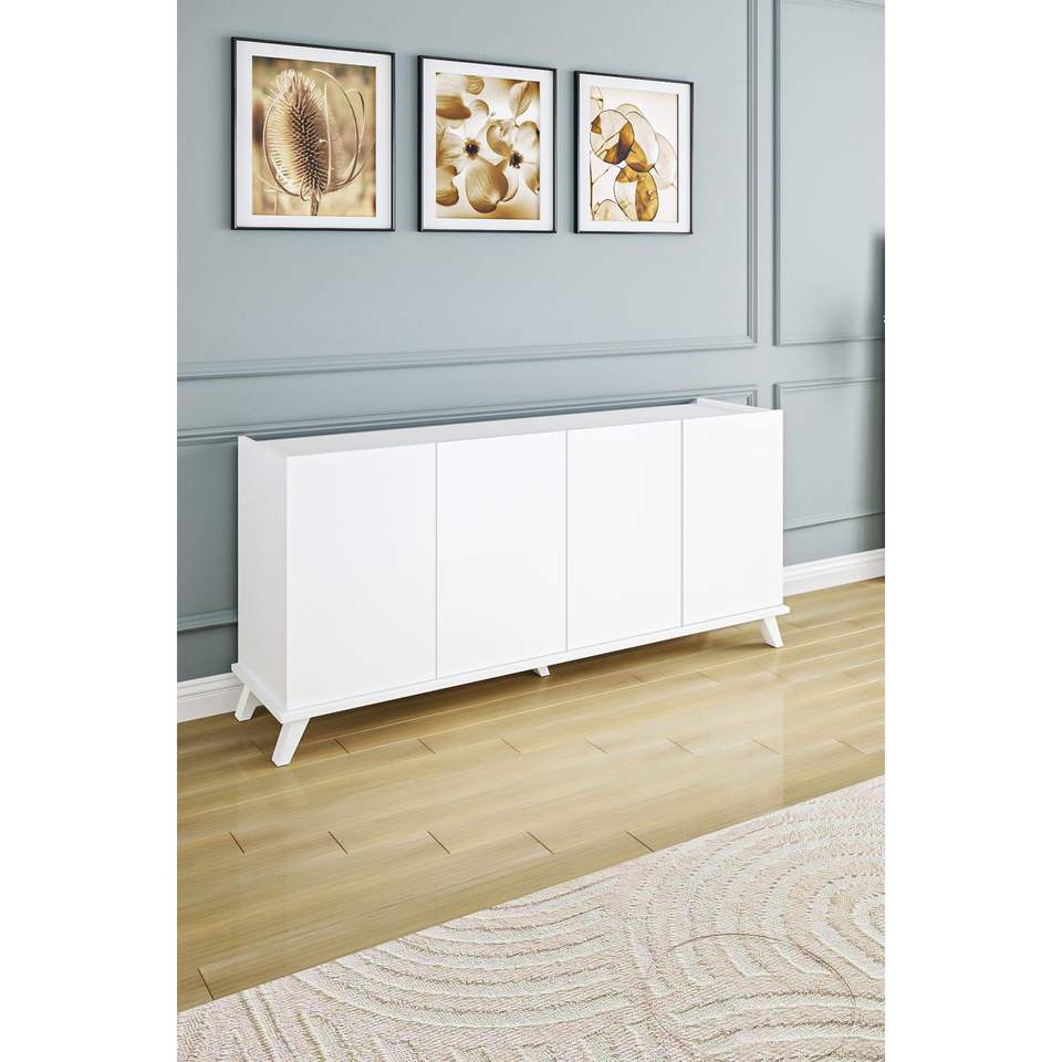 Modern Luxury 4-Door Wood Console Table 180cm Wide TV Stand Minimalist Storage Cabinet Convertible Design MDF White Accent