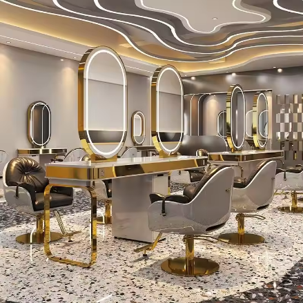 Modern Luxury All-in-One Ironing Mirror Station Wall-Mounted Metal Barber Shop Hair Salon Floor Mirror Internal Light Hotels