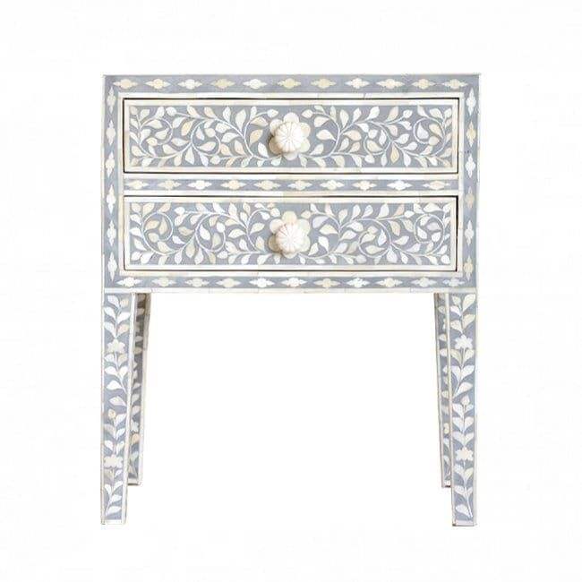 Modern Luxury Antique Heritage Inlay One Drawer Bedside / Nightstand / Side table From India