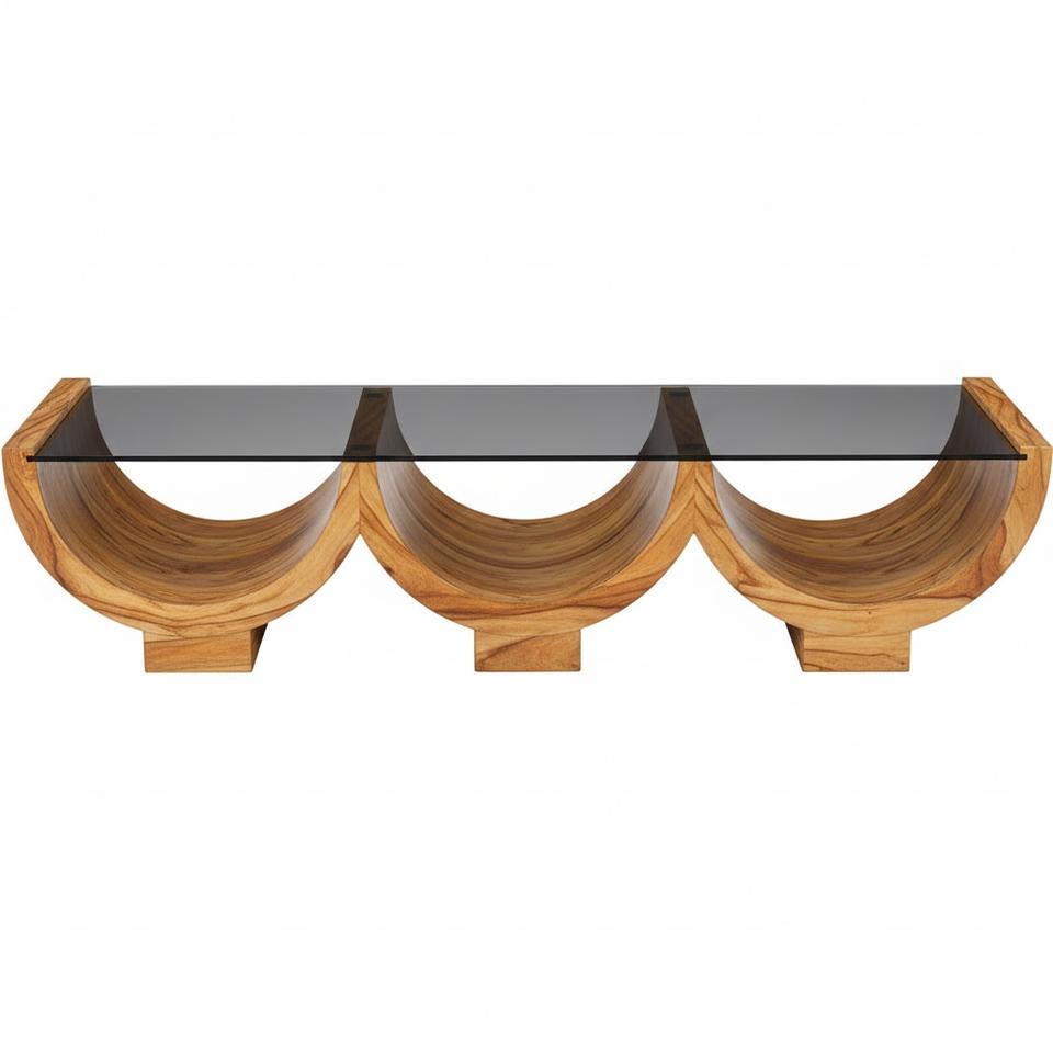 Modern Luxury Art Deco Glass Top Coffee Table With Unique Natural Oak Veneer Wood Base Living Room Furniture Centerpiece