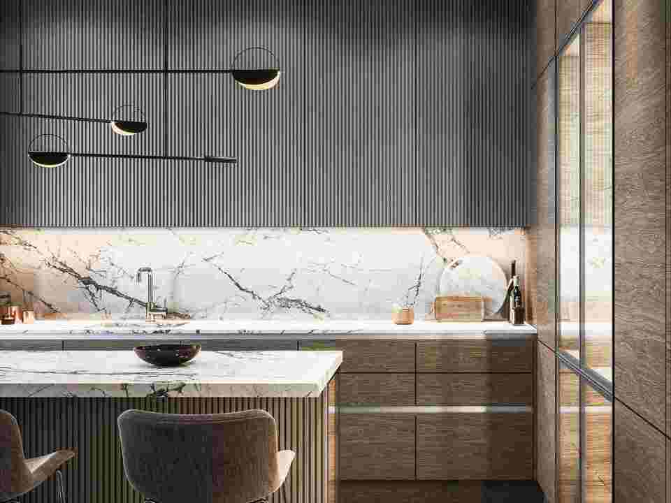 Modern Luxury Ash Wood Kitchen Cabinets Solid Wood with Light Brown for Dining-Includes Faucet