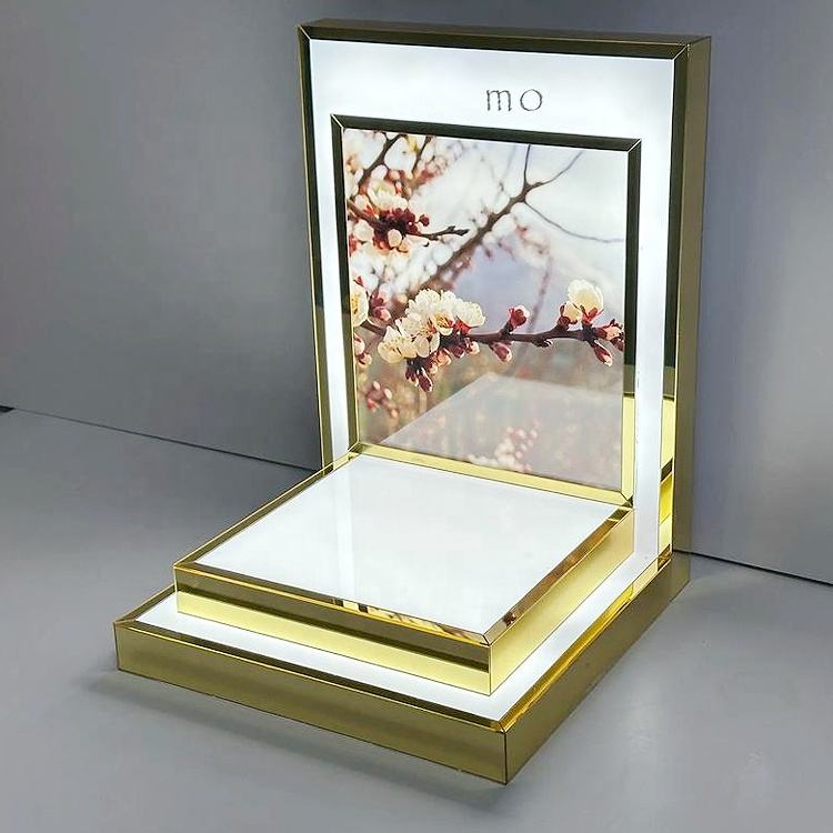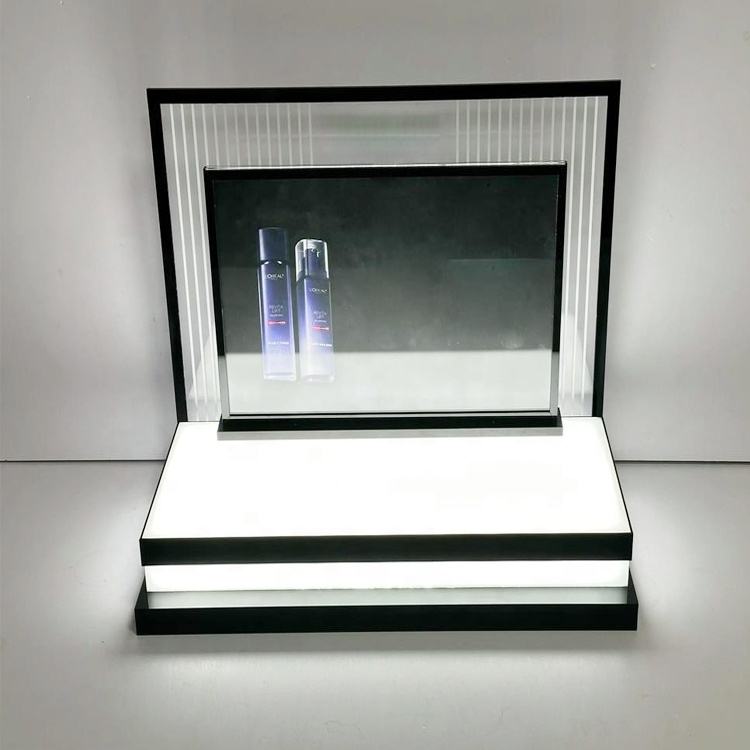Modern Luxury Black Led lighting Multi-layer Trapezoid Cosmetic Lipstick Acrylic Display Rack